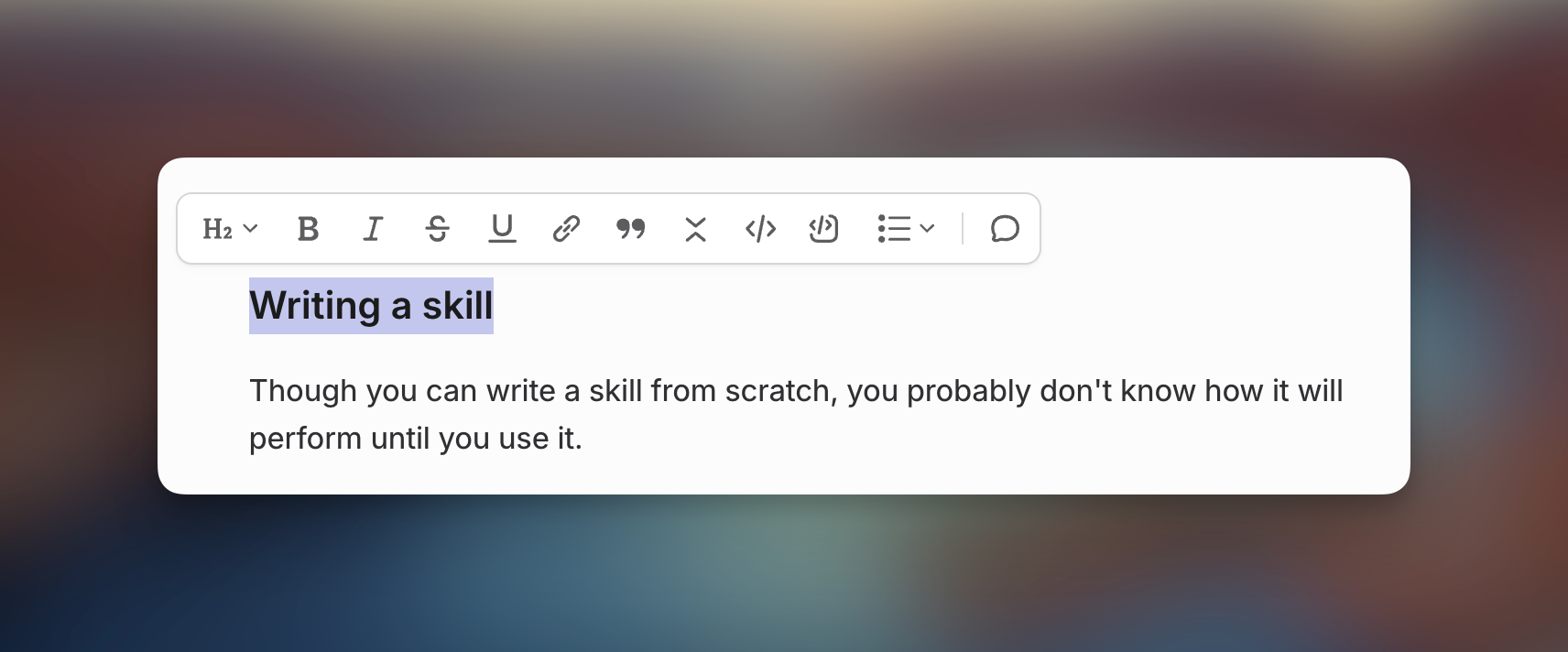 You can also apply styling with a toolbar, which will pop up after you highlight a word or phrase or using slash commands when typing /.