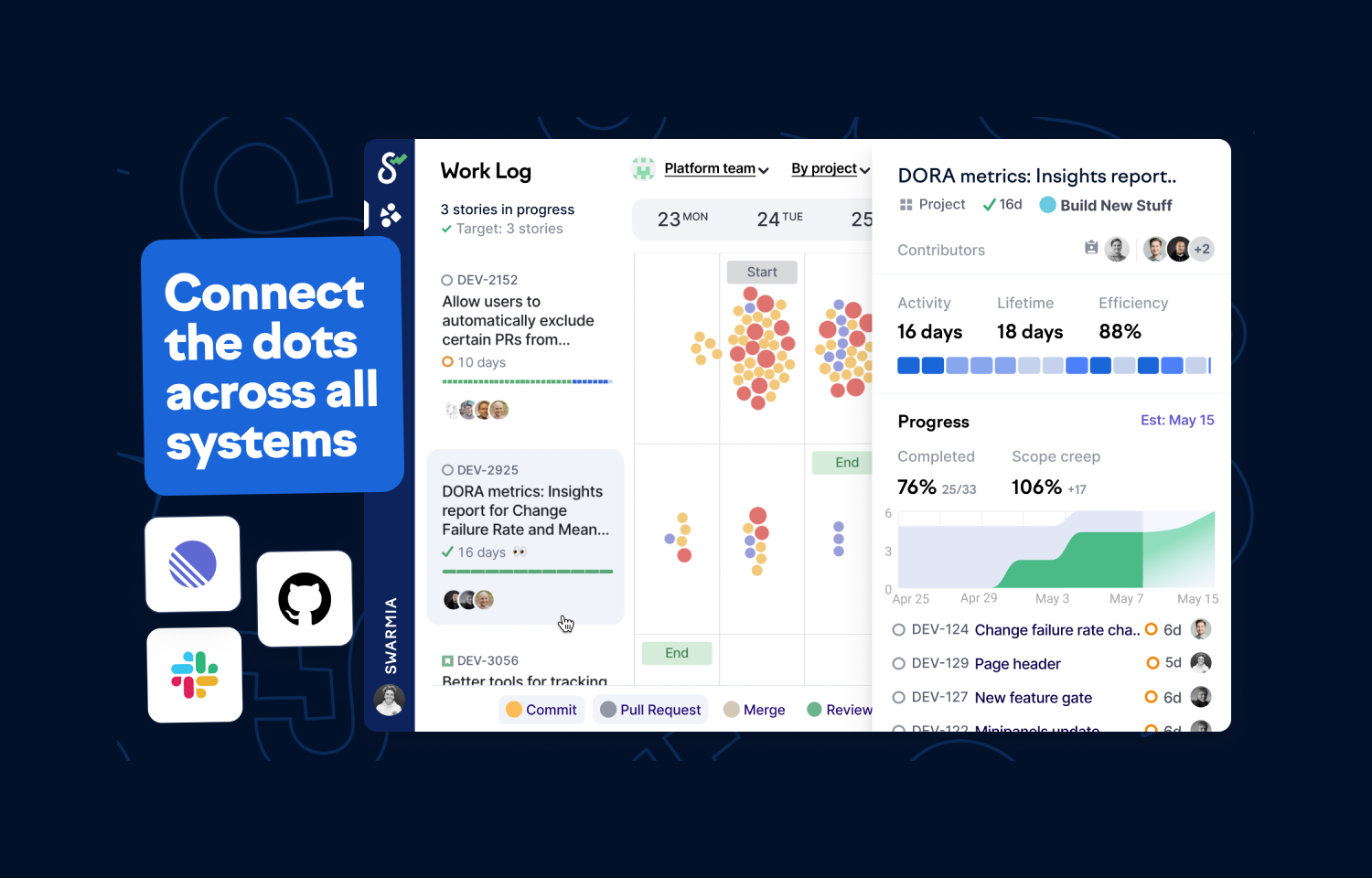 With Swarmia, you’ll gain access to proven metrics like DORA and SPACE as well as practical tools like Slack notifications that allow teams to speed up code reviews and stay on top of ongoing work.